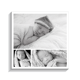 Uniek voor aan de wandWij drukken je unieke babyfoto haarscherp af en spannen deze op een stevige lijst met ophanggat.